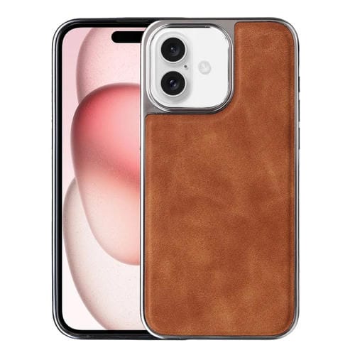 Estuche para teléfono iPhone 16 Plus Magsafe TPU híbrido Pu lateral galvanizado (Marrón)
