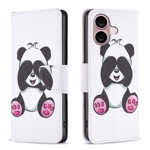 Funda de Cuero para iPhone 16 Plus con Tapa y Patrón de Dibujo de Colores (Panda)