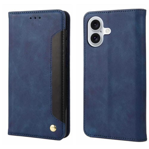 Funda para teléfono iPhone 16 Plus Skin Feel Empalme Cuero (Azul)