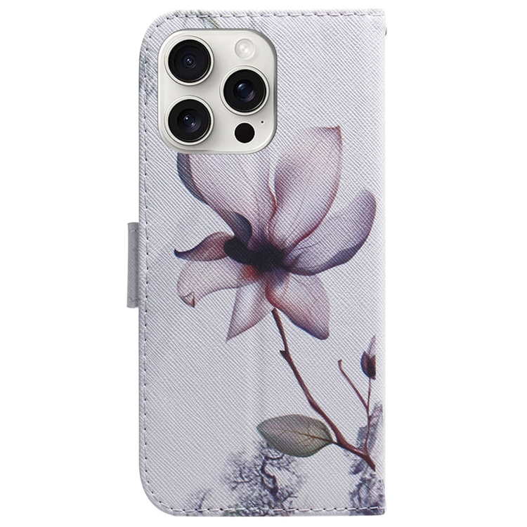 Pour iPhone 16 Pro Max Étui en cuir à rabat avec dessin coloré (Magnolia)
