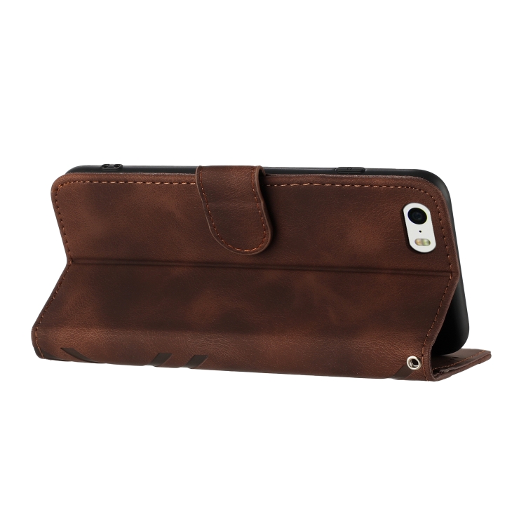 Funda para iPhone 5S Se Line Pattern Skin Feel Leather Phone Case (Café)