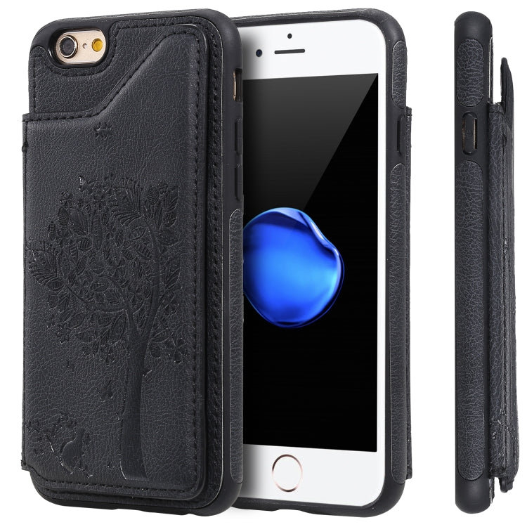 Funda Protectora para iPhone 6 y 6S con Patrón de Árbol de Gato, Ranuras para Tarjetas, Marco de Fotos y Soporte (Negro)