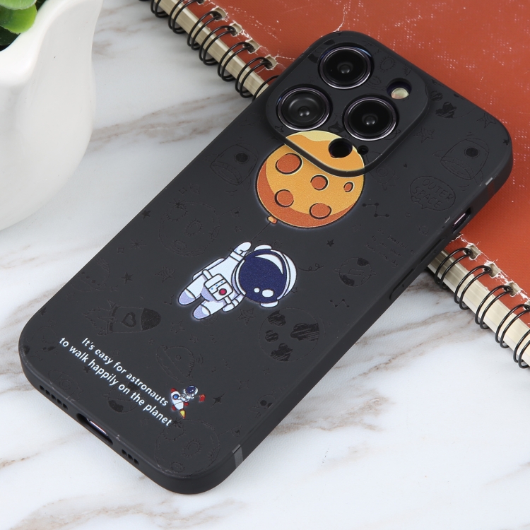 Funda de Teléfono para iPhone 6 / 6S Patrón de Astronauta Borde Recto Silicona (Planet Landing-Black)