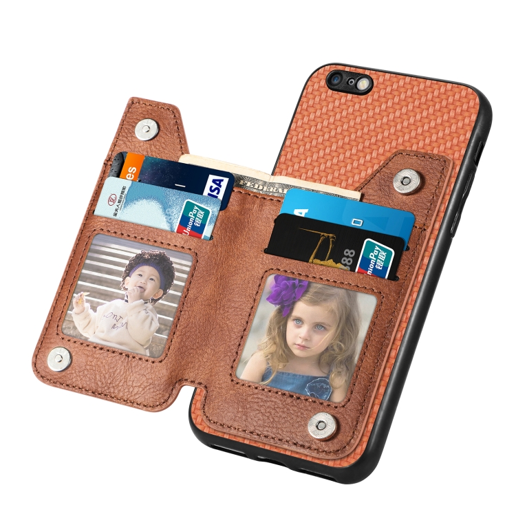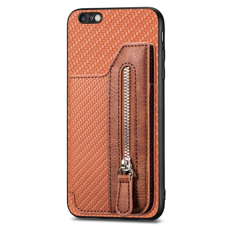 Estuche para Teléfono iPhone 6 Plus 6S Plus Billetera Cremallera Horizontal Fibra de Carbono (Marrón)