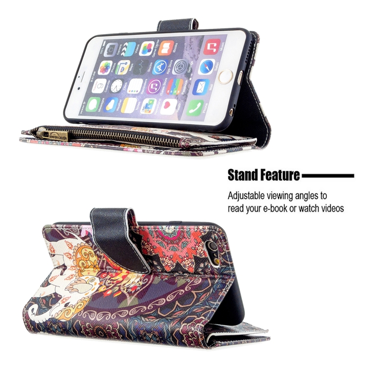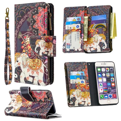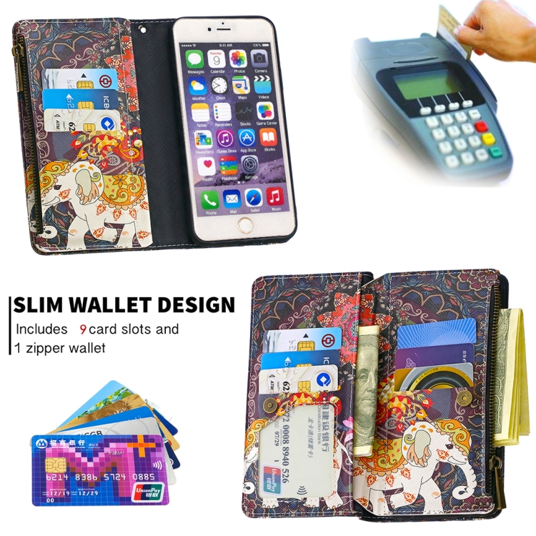 Funda de Cuero para iPhone 6S Plus y 6 Plus con Tapa Horizontal, Soporte, Ranuras para Tarjetas y Billetera (Elefantes de Flores)