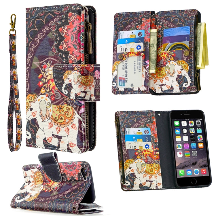 Funda de Cuero para iPhone 6S y 6 con Tapa Horizontal, Soporte, Ranuras para Tarjetas y Billetera (Elefantes de Flores)