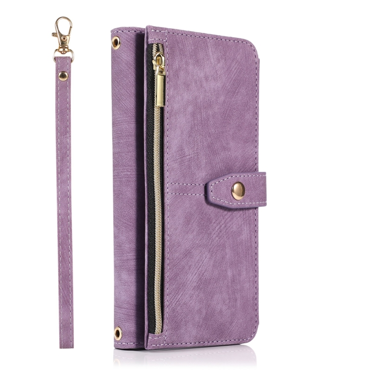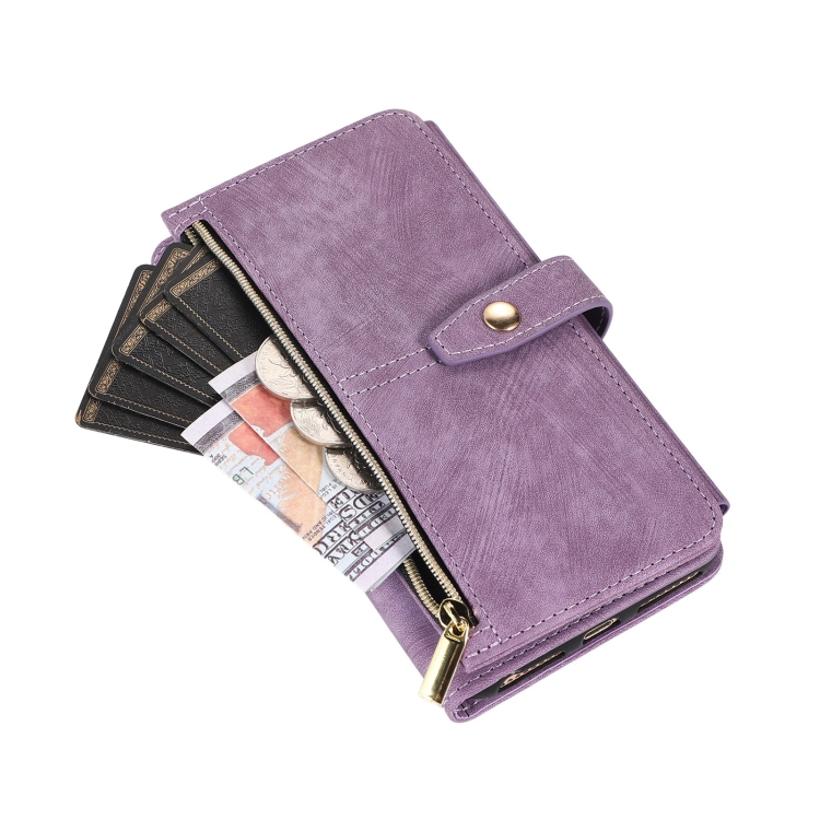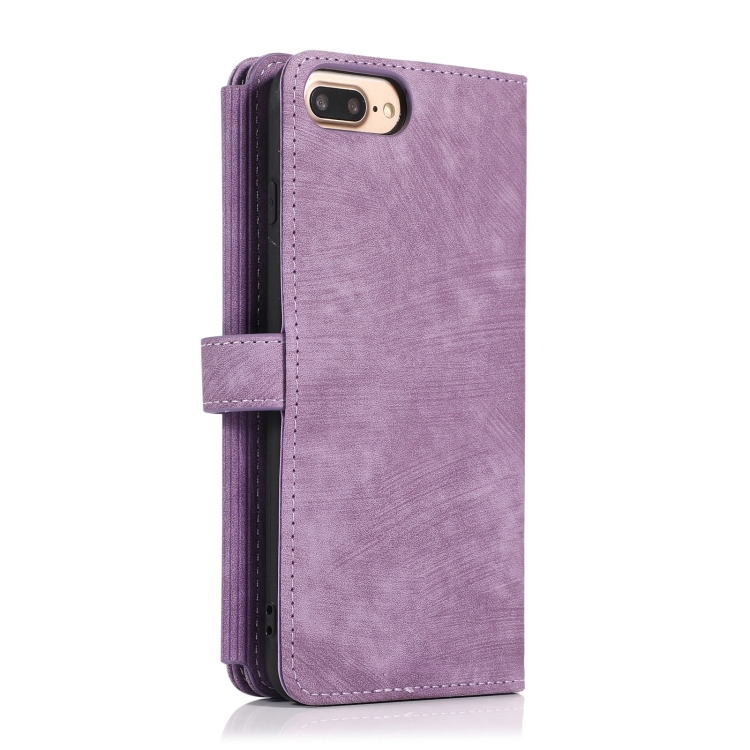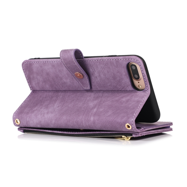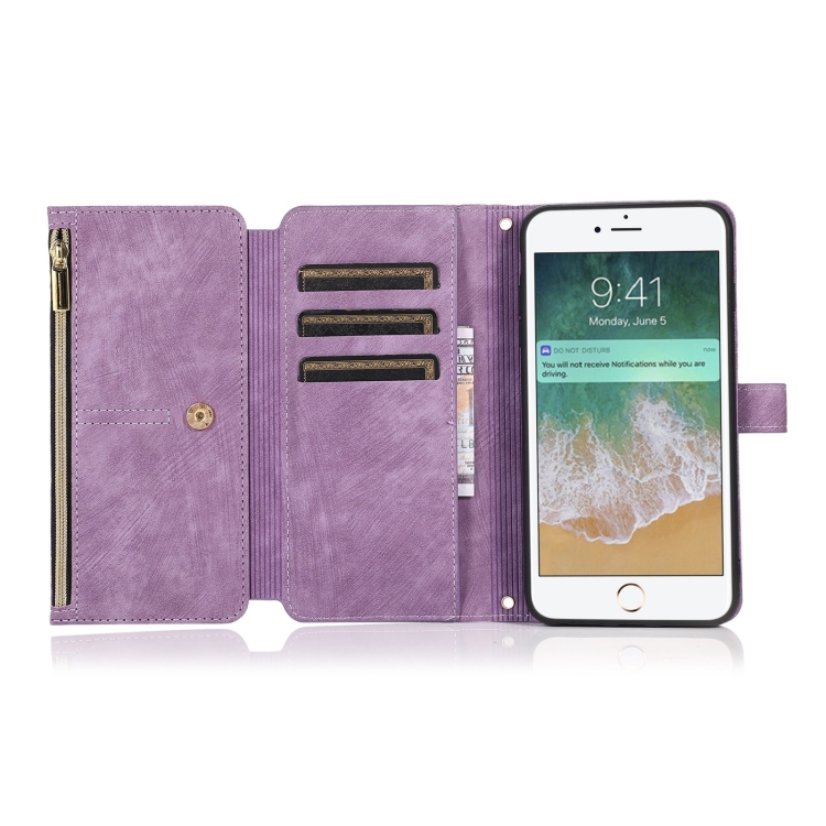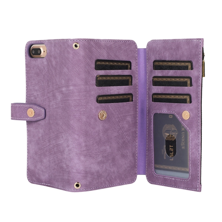 Funda de Cuero para Teléfono iPhone 7 Plus 8 Plus Dream 9-Card Wallet Zipper Bag (Púrpura)