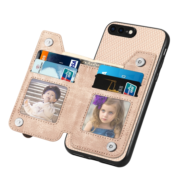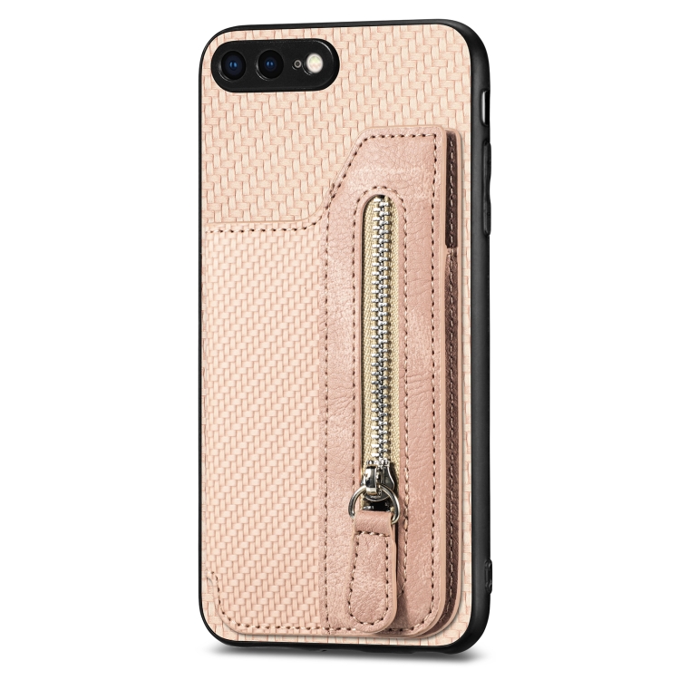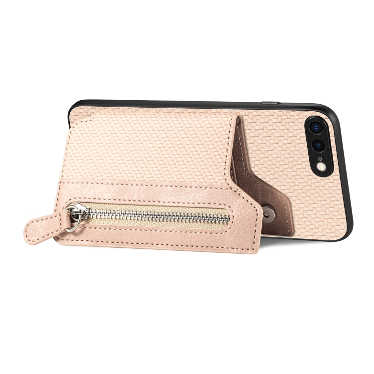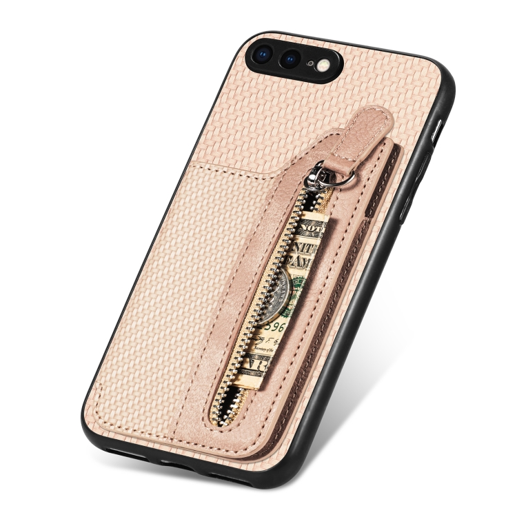 Estuche para Teléfono iPhone 7 Plus 8 Plus con Billetera Cremallera Horizontal Fibra de Carbono (Caqui)