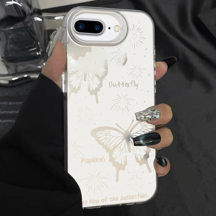 Funda híbrida para iPhone 7 Plus 8 Plus TPU PC pintura plateada mariposa hueca blanca