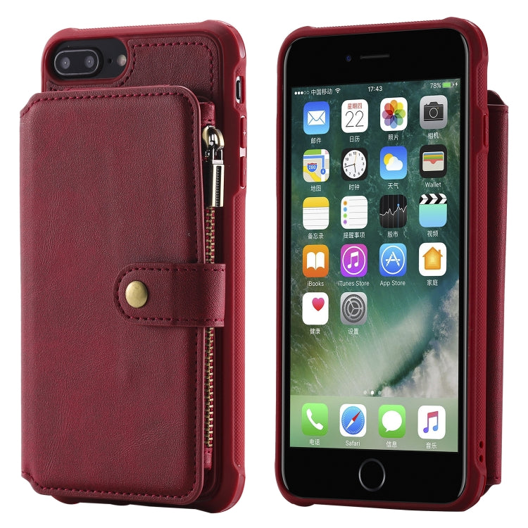 Funda Protectora para iPhone 7 Plus 8 Plus con Cremallera Ranuras para Tarjetas Soporte Fotos Billetera (Rojo)