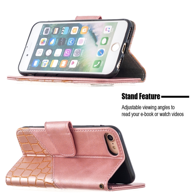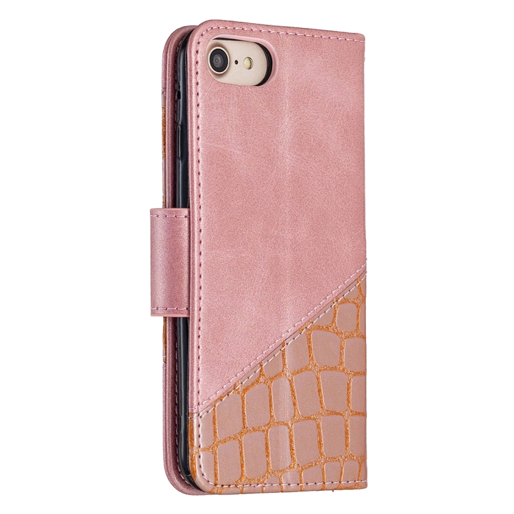 Funda para iPhone 8/7 Cuero Pu Textura Cocodrilo con Tapa Horizontal Billetera Soporte y Ranuras para Tarjetas (Oro Rosa)