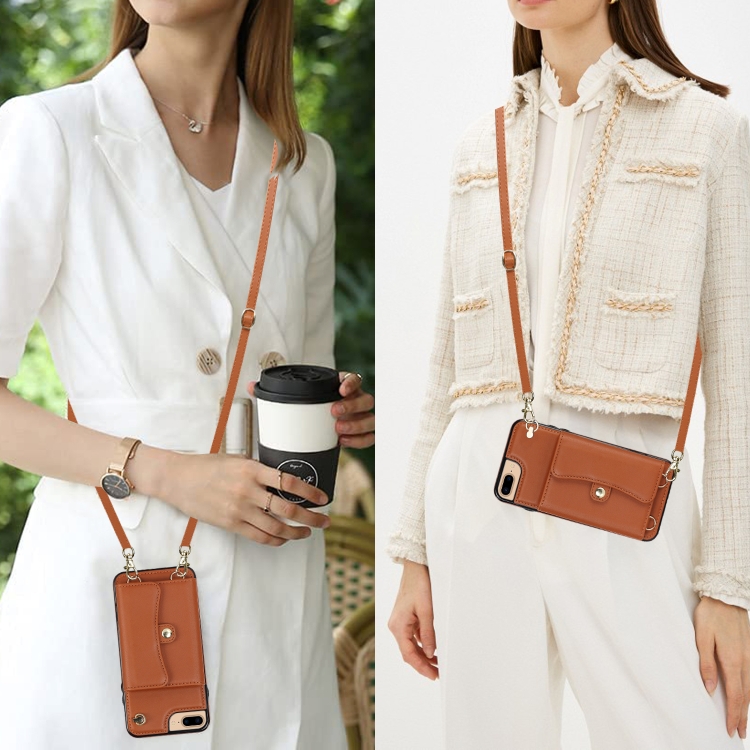 Estuche para Teléfono iPhone 8 Plus / 7 Plus Ranura para Tarjeta Rfid Cordón Largo (Marrón)