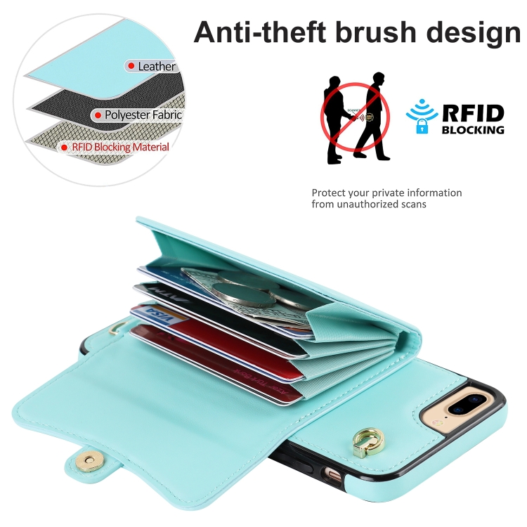 Estuche para Teléfono iPhone 8 Plus 7 Plus Ranura Tarjeta Rfid Cordón Largo (Verde Menta)