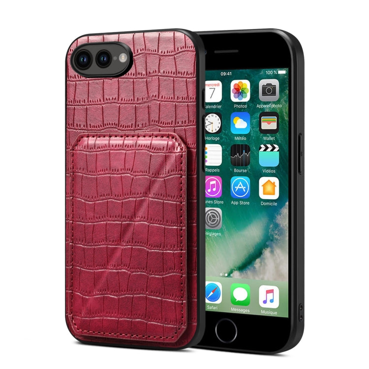 Funda Trasera para iPhone 8 Plus/7 Plus Piel de Cocodrilo de Imitación con Soporte (Rojo Rosa)