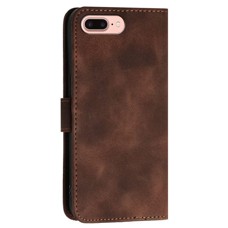 Funda de Cuero para iPhone 8 Plus y 7 Plus Yx0080 con Tapa y Cordón Diseño Mariposa y Cuadrícula (Café)