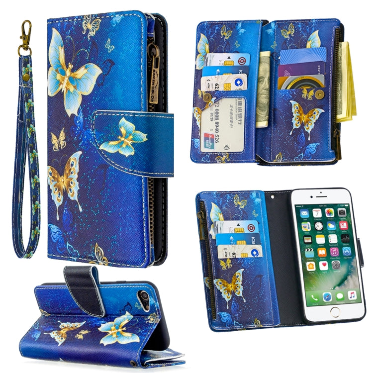 Funda de cuero para iPhone 8 y 7 con cremallera, tapa horizontal, soporte, ranuras para tarjetas y billetera (Mariposa Dorada)