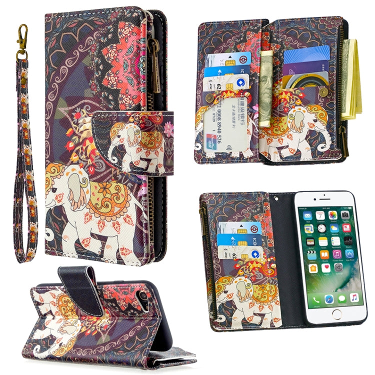 Funda de Cuero para iPhone 8 y 7 con Tapa Horizontal, Soporte, Ranuras para Tarjetas y Billetera (Elefantes de Flores)