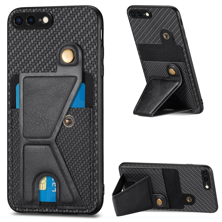 Funda de Teléfono para iPhone SE 2022/2020/7/8 con Soporte en Forma de K y Billetera de Fibra de Carbono (Negro)