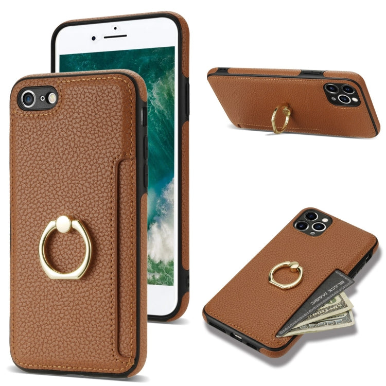 Funda para Teléfono iPhone SE 2022/2020/8/7 Cuero Litchi con Tarjeta y Anillo (Marrón)