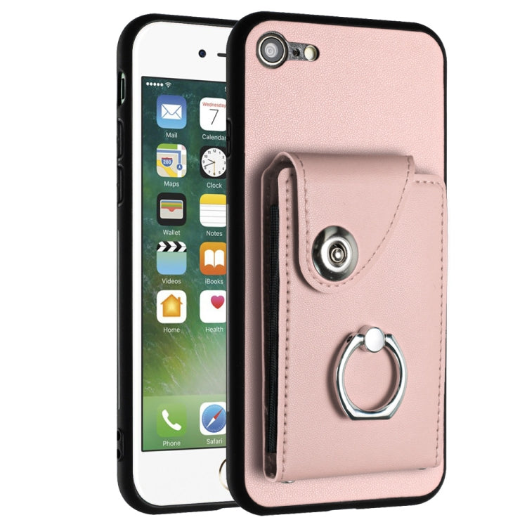 Funda para Teléfono iPhone SE 2022/2020/8/7 con Soporte para Anillo y Bolsa para Tarjeta (Rosa)