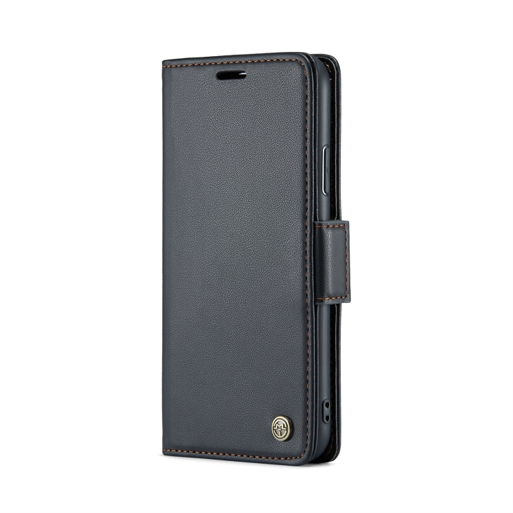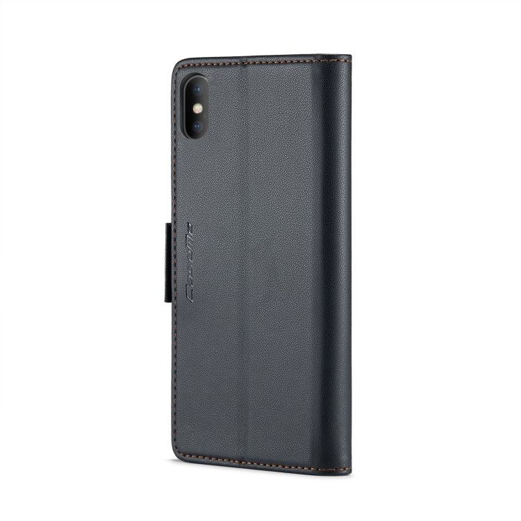 Funda para iPhone SE 2022/SE 2020/6/7/8 Caseme 023 Hebilla de Mariposa Litchi Textura RFID Antirrobo (Negro)