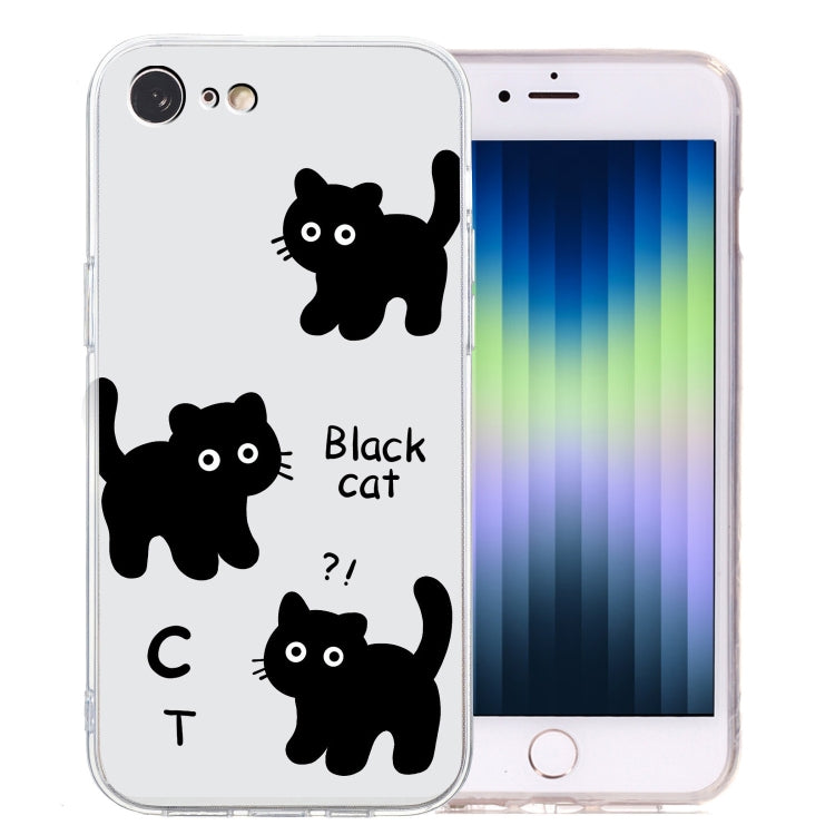 Funda de Teléfono TPU para iPhone SE 2022/SE 2020/8/7 con Patrón de Dibujo de Colores (Gato Negro)