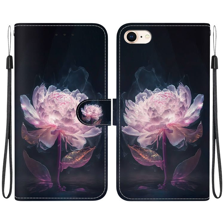 Funda para Teléfono iPhone SE 2022/SE 2020 Cuero Dibujo Coloreado Textura Cristal (Peonía Púrpura)