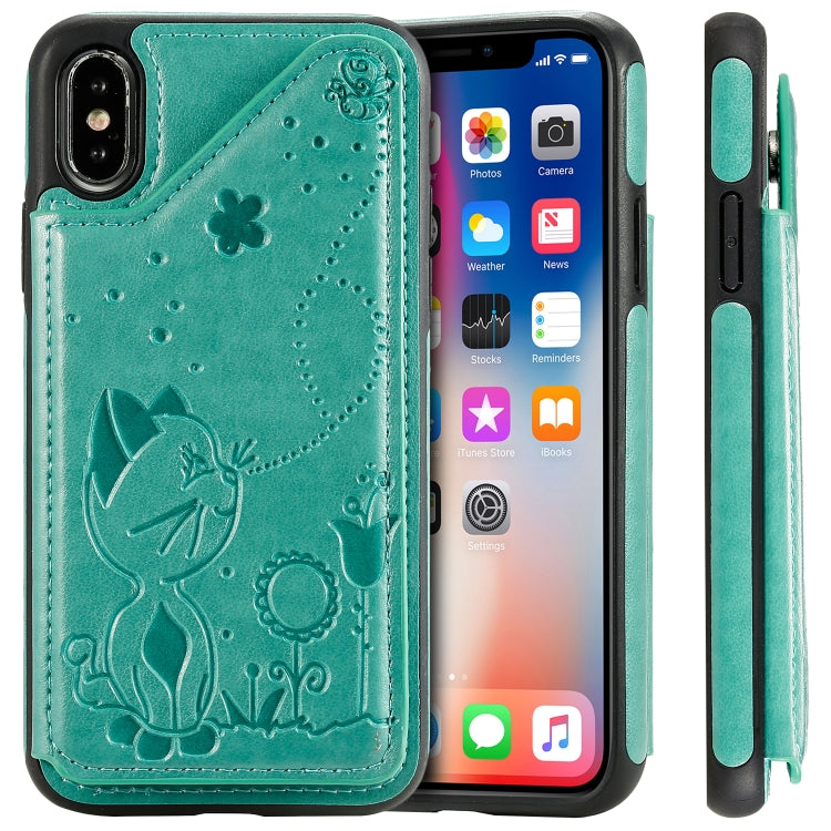 Funda Protectora para iPhone X Cat Bee Patrón en Relieve a Prueba de Golpes con Ranuras para Tarjetas (Verde)