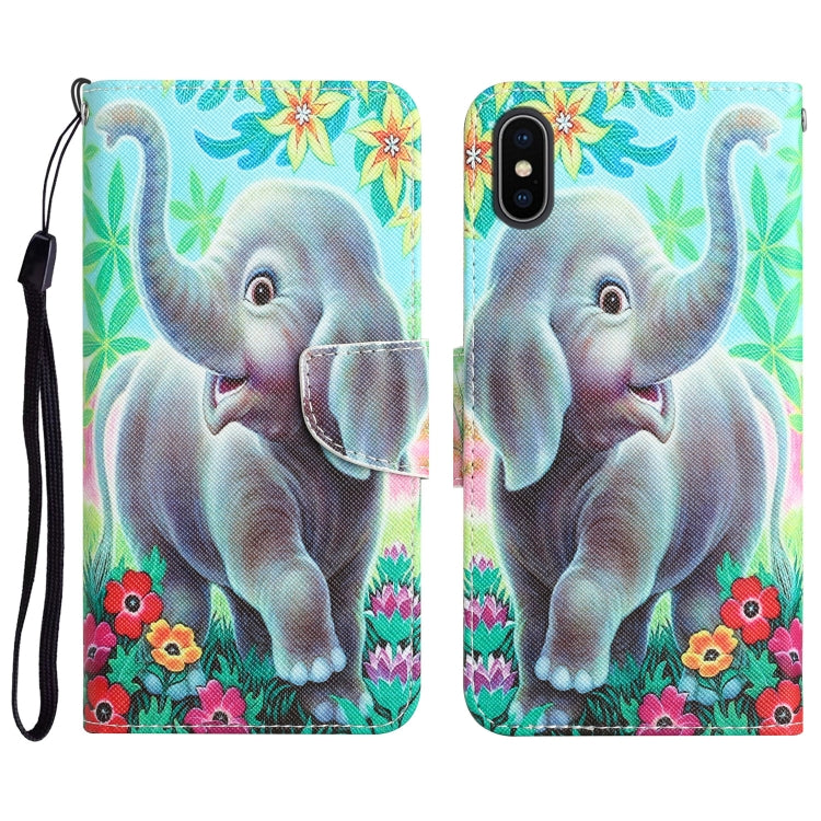 Estuche de Teléfono iPhone X Cuero Dibujo Coloreado Elefante