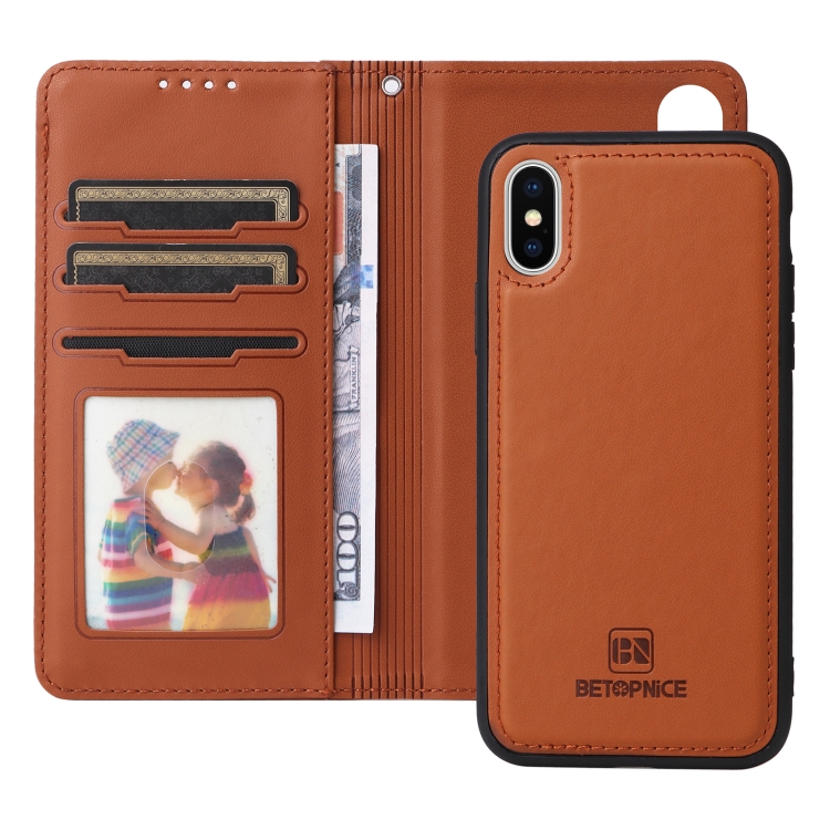 Funda para iPhone X / Xs Betopnice Bn-005 2 En 1 Cuero Desmontable (Marrón)