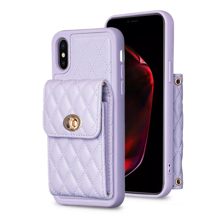Caja de Teléfono de Cuero Rombal para iPhone X Xs Billetera con Hebilla de Metal Vertical (Púrpura)