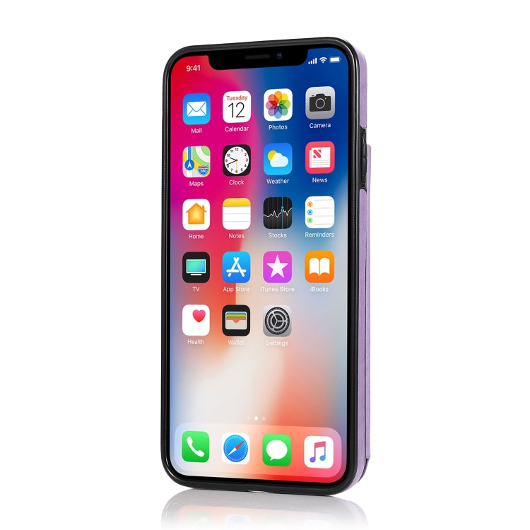 Estuche Protector para iPhone X Xs de Pu y TPU con Patrón Mandala Doble Hebilla Ranuras Tarjetas Soporte Marco Fotos (Púrpura)