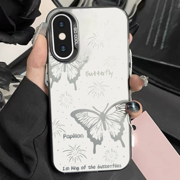 Funda híbrida para iPhone X Xs TPU y PC con pintura plateada mariposa hueca negra
