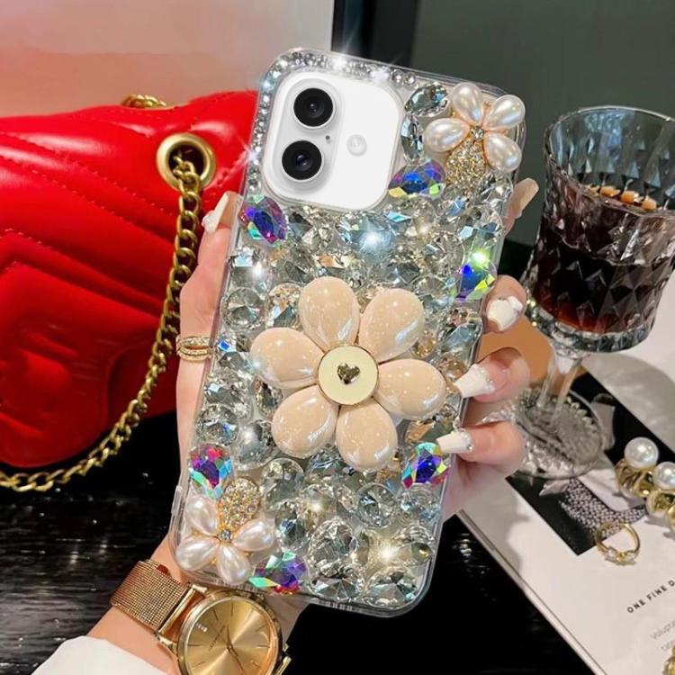 Funda para Teléfono iPhone X Xs con Soporte Girasol y PC con Diamantes Colocados a Mano (Blanco)
