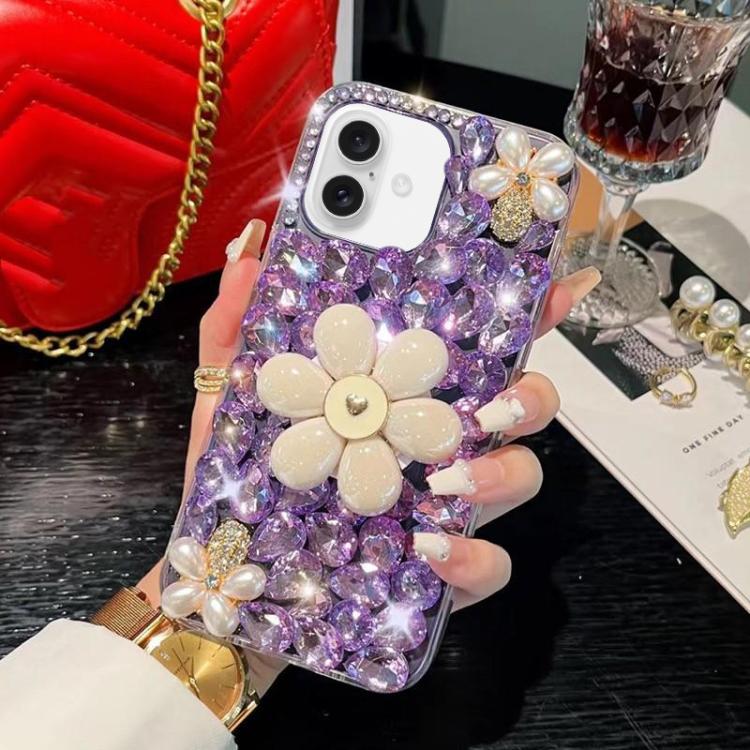 Funda para Teléfono iPhone X / Xs con Soporte de Girasol y PC con Diamantes Colocados a Mano (Púrpura)