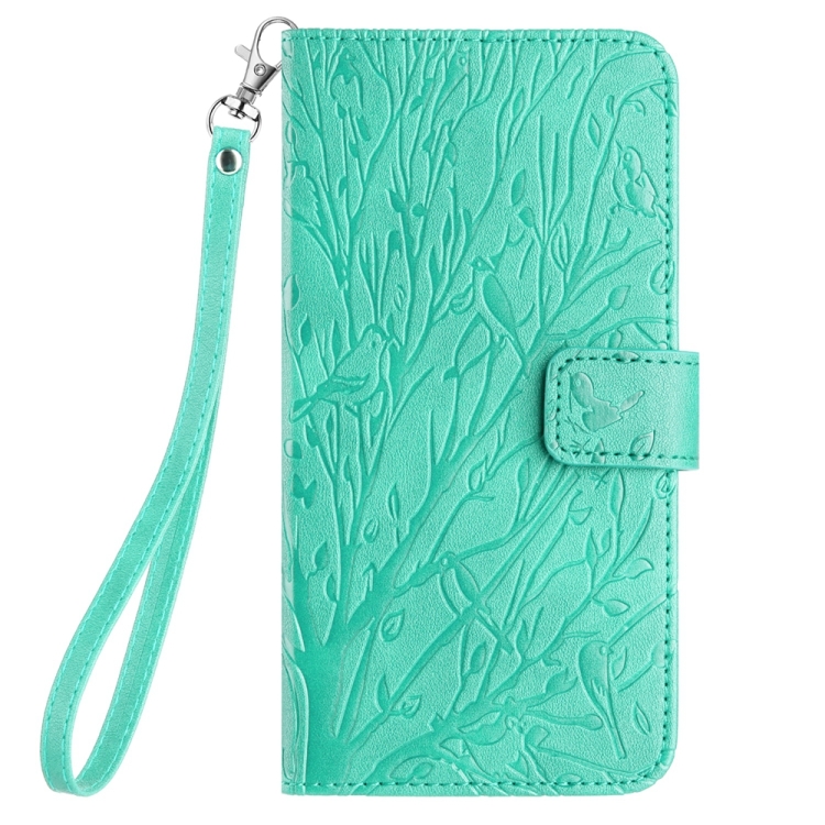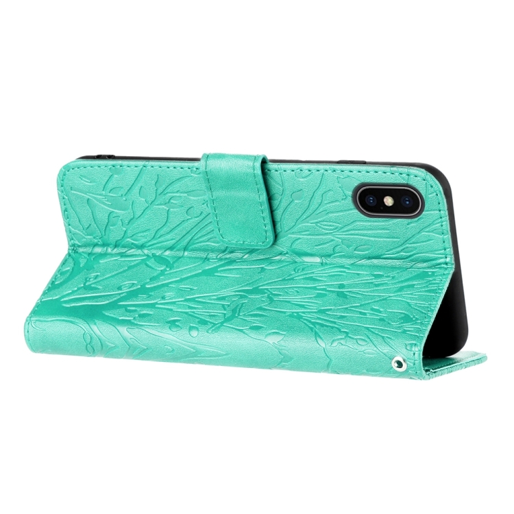 Funda para Teléfono iPhone X Xs Cuero Patrón en Relieve Tree Birds (Verde)