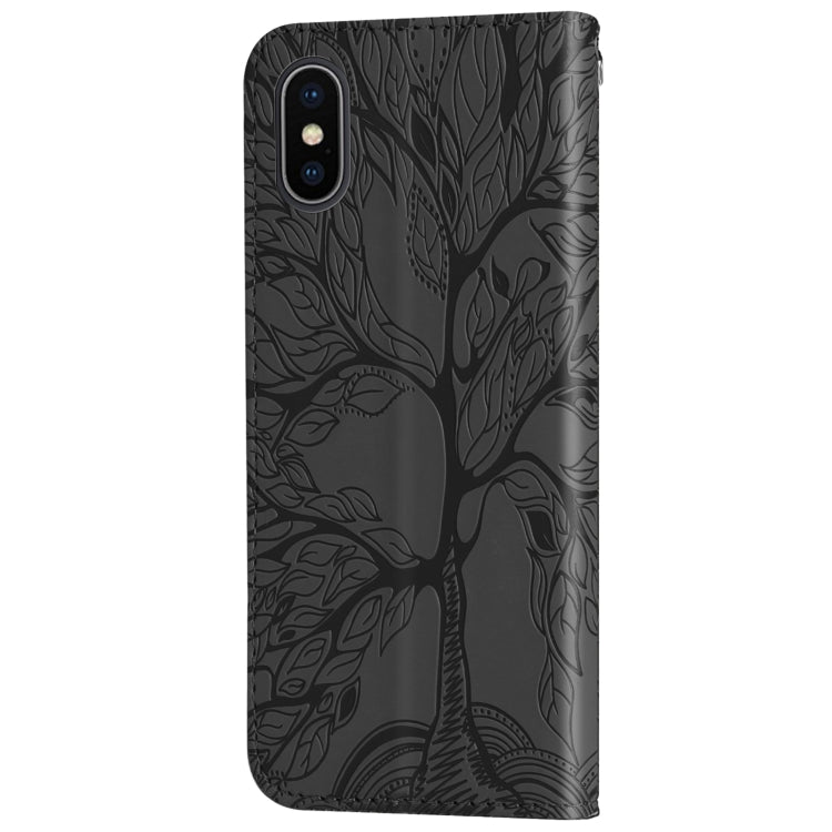 Estuche de Cuero Life Of Tree para iPhone X / Xs con Tapa Horizontal, Soporte, Ranura para Tarjeta, Billetera, Marco de Fotos y Cordón (Negro)
