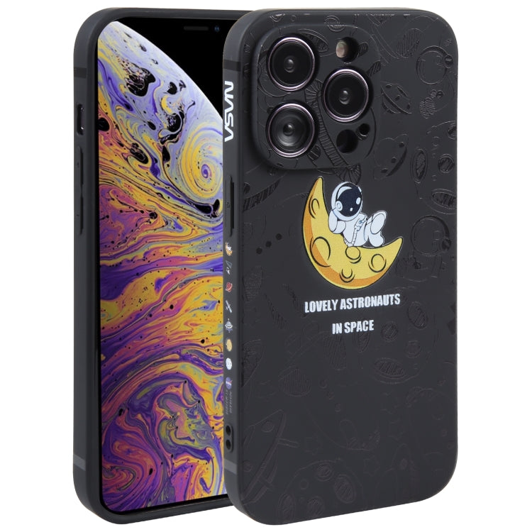 Funda de teléfono iPhone X Xs Silicona borde recto patrón Astronauta (Negro)