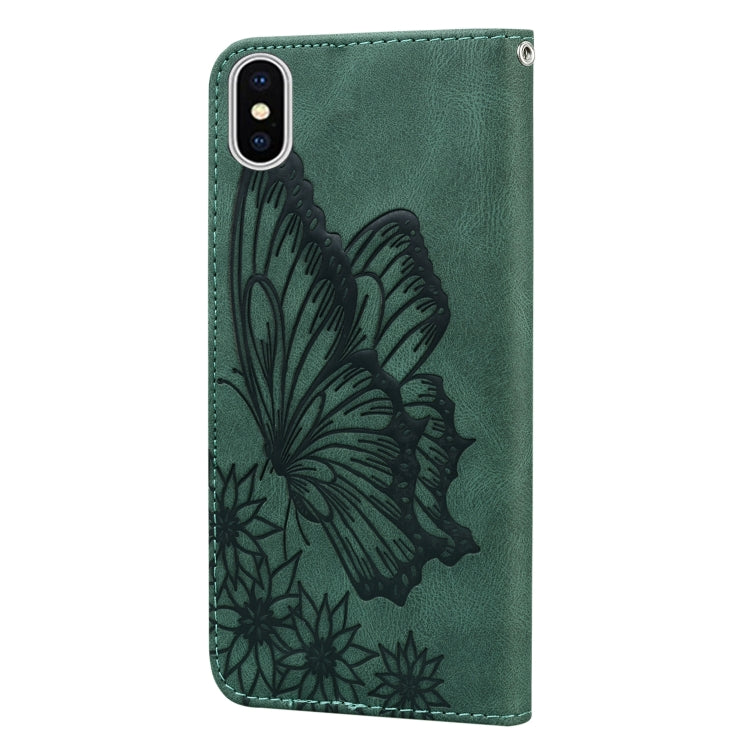 Funda de cuero para iPhone X Xs Retro Skin Feel Butterflies con tapa horizontal y soporte (Verde)