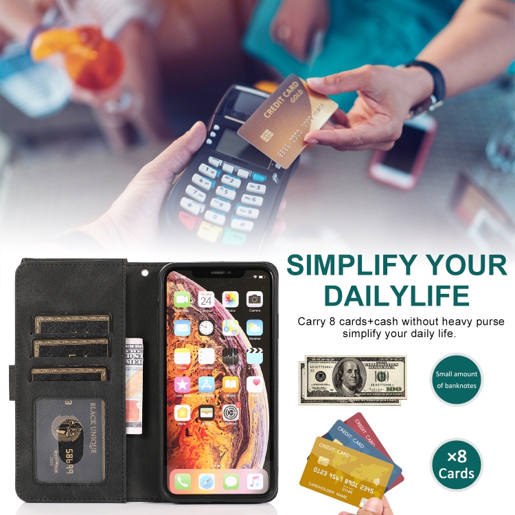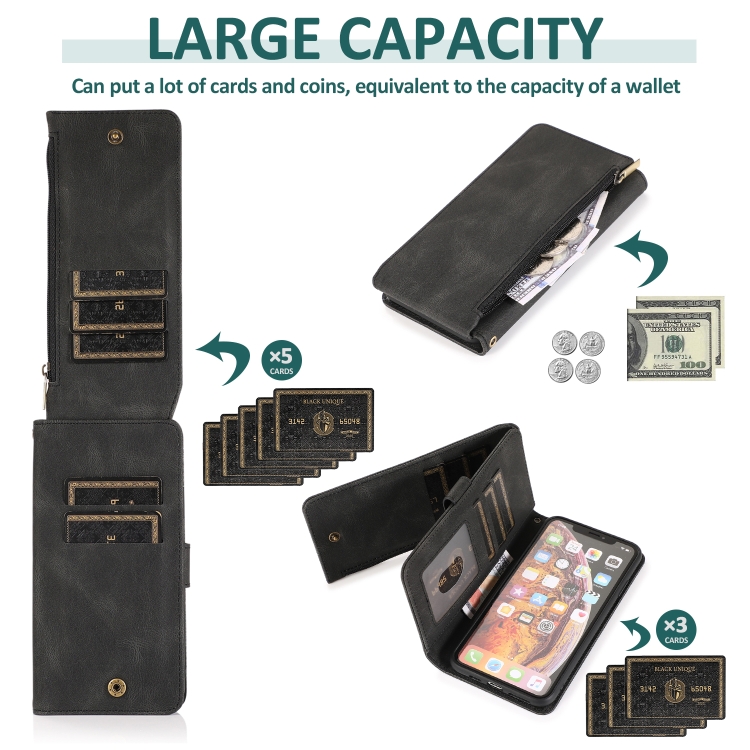 Funda para iPhone X Xs Crazy Horse Texture Zipper Wallet Bag Cuero Tapa Horizontal Soporte Ranuras Tarjetas Billetera Cordón (Negro)