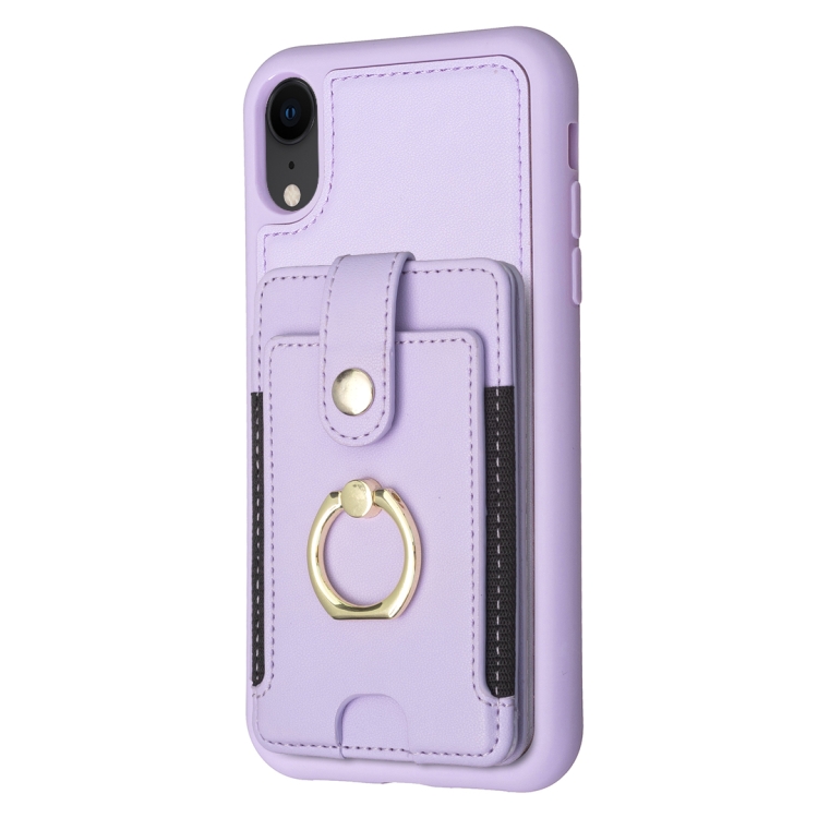 Funda para Teléfono iPhone Xr Bf27 con Soporte y Tarjeta de Anillo de Metal (Púrpura)