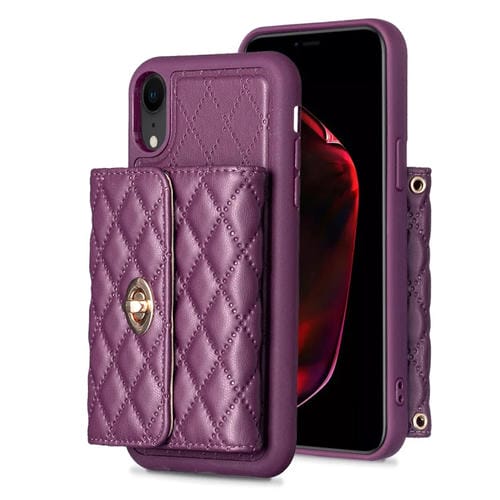 Caja de Teléfono de Cuero Rombal para iPhone Xr con Hebilla de Metal Horizontal (Púrpura Oscuro)