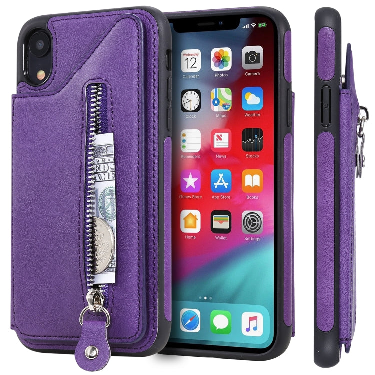 Funda Protectora para iPhone Xr Doble Hebilla Cremallera a Prueba de Golpes (Púrpura)