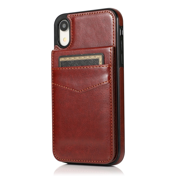 Funda Protectora para iPhone Xr PC + TPU con Soporte y Ranuras para Tarjetas (Marrón)