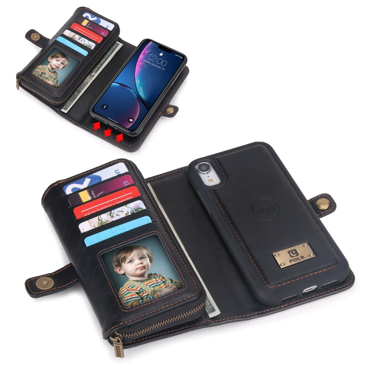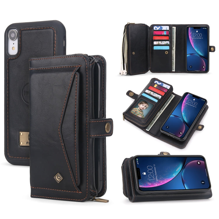 Funda de Cuero para iPhone Xr con Billetera y Cremallera Multifuncional (Negro)