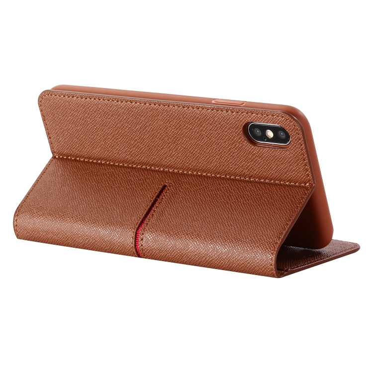 Funda Protectora Gebei para iPhone Xr con Tapa Horizontal de Cuero de Grano Superior Soporte Ranuras para Tarjetas Billetera Marco de Fotos (Marrón)