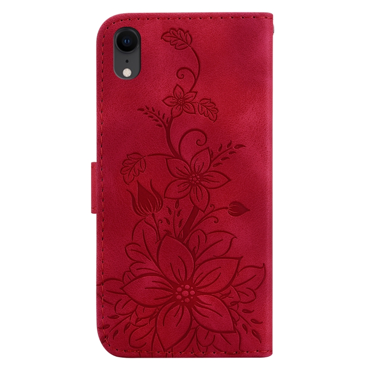 Funda de Teléfono para iPhone Xr Lily en Relieve de Cuero (Rojo)