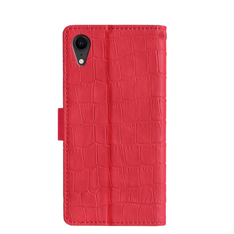 Funda para iPhone Xr Cuero de Pu Textura de Cocodrilo Cierre Magnético Tapa Horizontal Soporte Ranuras para Tarjetas Billetera (Rojo)