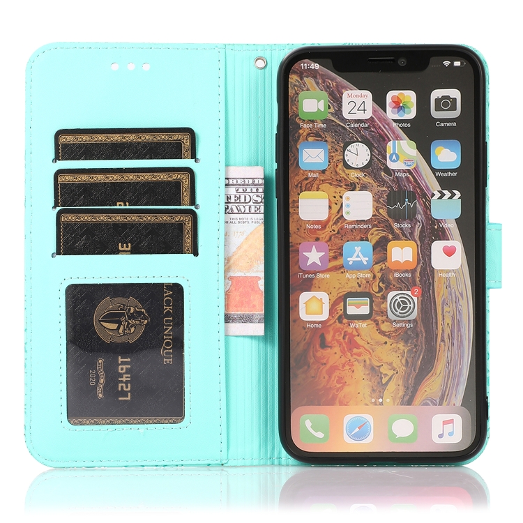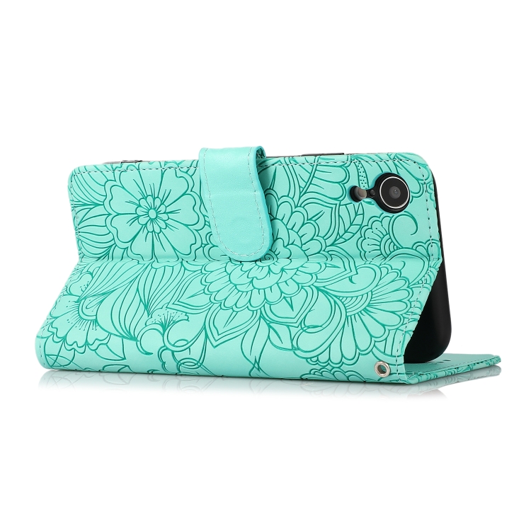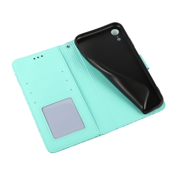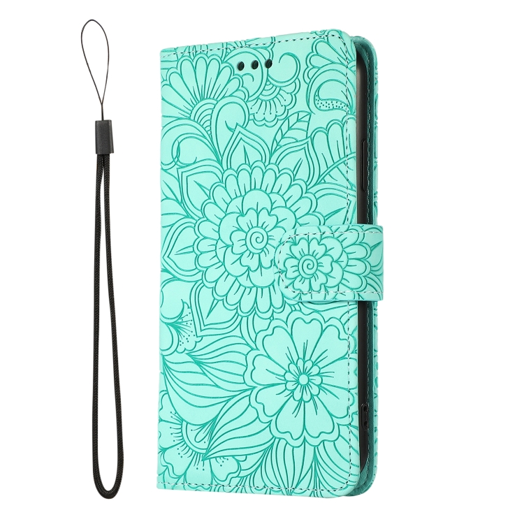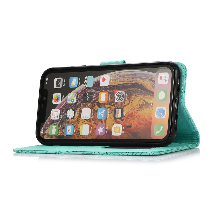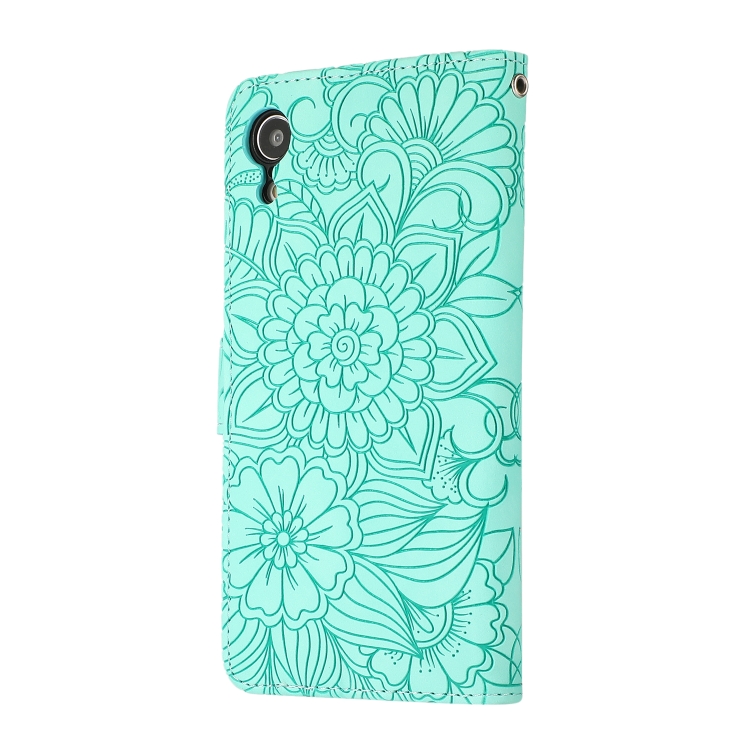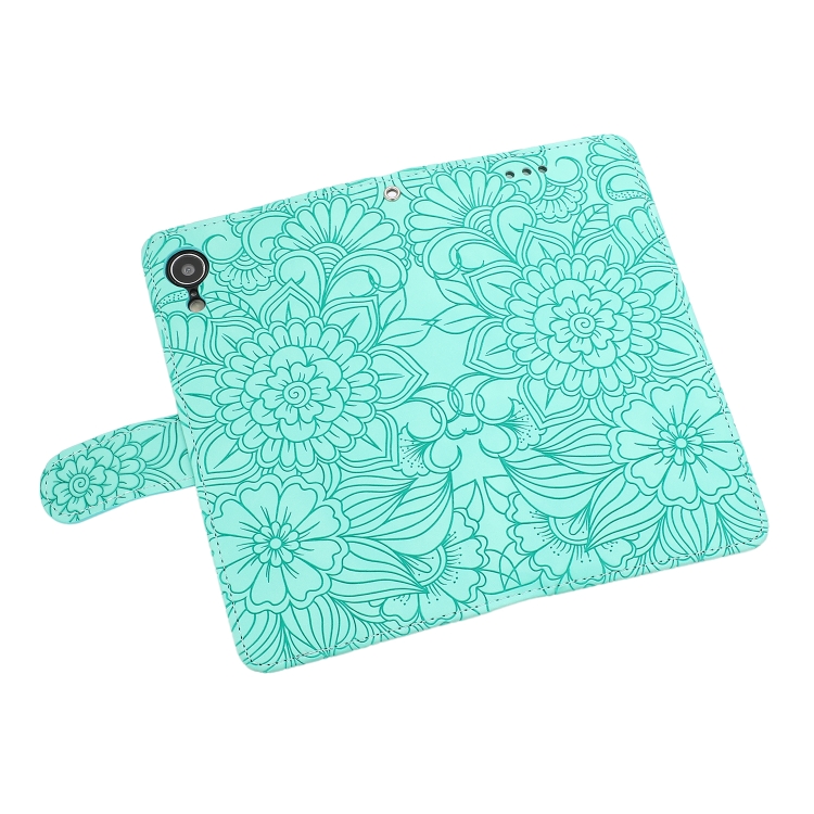 Funda de Cuero para iPhone Xr Skin Feel con Tapa Horizontal Girasol En Relieve Soporte Ranuras para Tarjetas Billetera y Cordón (Verde)