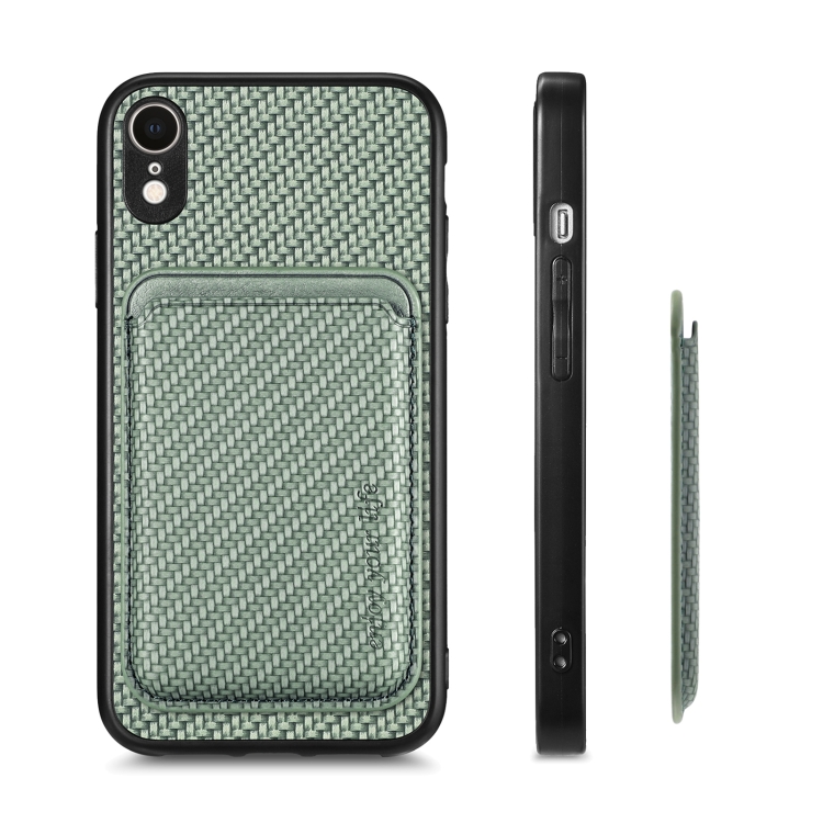 Funda Magnética para Teléfono iPhone Xr Tarjeta Cuero Fibra de Carbono Magsafe (Verde)